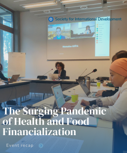 On January 30th 2024, the Society for International Development (SID) organized a workshop in Geneva titled “The Surging Pandemic of Health and Food financialization”  with the aim to shed lights on the growing and unregulated trends of financialization in these two separate but interconnected arenas.