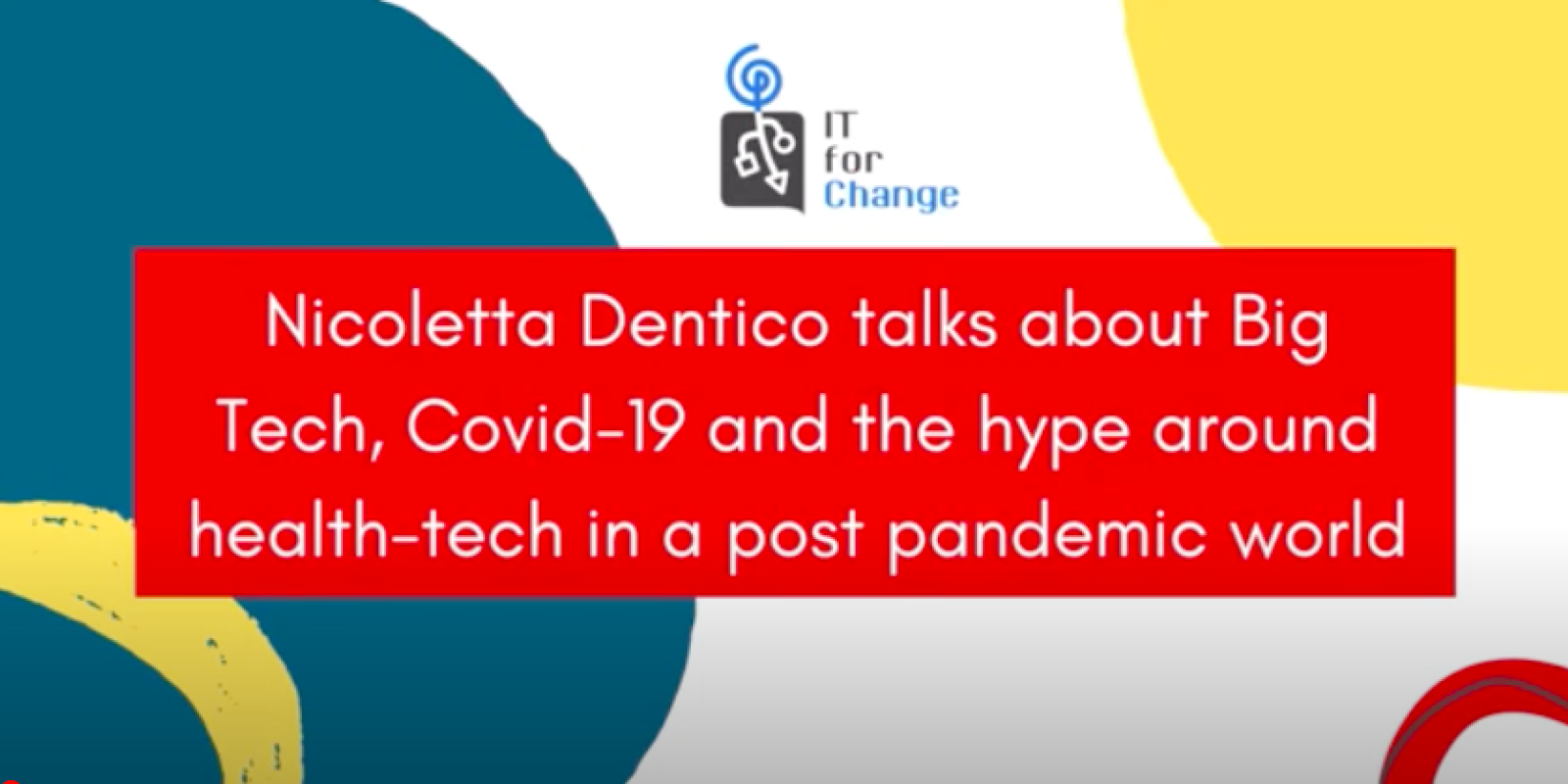 Watch Nicoletta Dentico talking about Big Tech, Covid-19 and the hype around health-tech in a post-pandemic world.