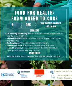 The webinar looked deeply into the profound insights highlighted in the recent UN Special Rapporteur on Health's report regarding "Food, Nutrition, and the Right to Health." This report emphasizes the intricate and diverse links between food and health systems, demanding further exploration and prioritization at the governance level for the greater public good.